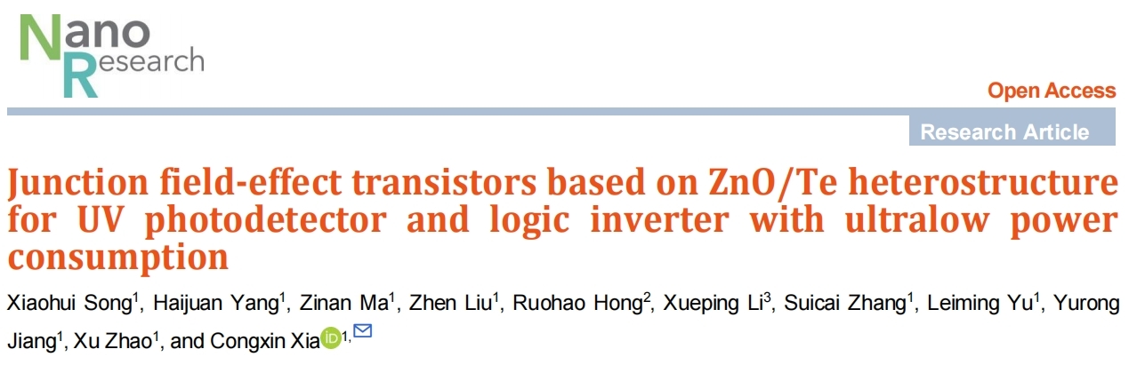 河南师范大学物理学院夏从新教授团队在结型场效应晶体管(JFET)领域取得最新进展,该研究成果以"Junction field-effect transistors based on ZnO/Te heterostructure for UV photodetector and logic inverter with ultralow power consumption"为题发表在《Nano Research》期刊上。