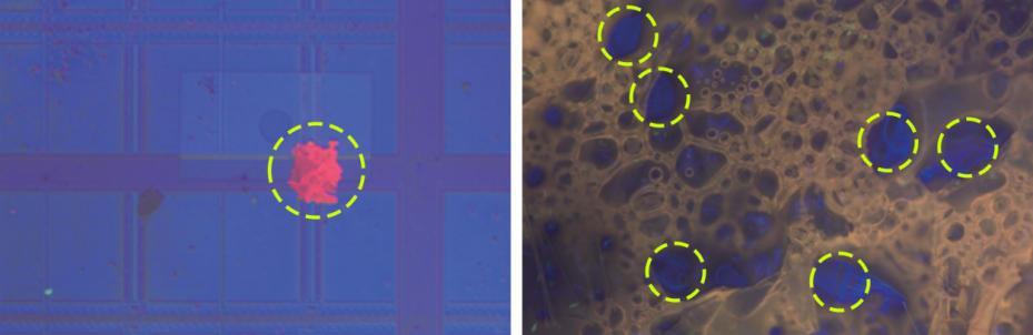 此类缺陷的检测,利用荧光的观察方式可以使残留物“发光”,以便于检查。