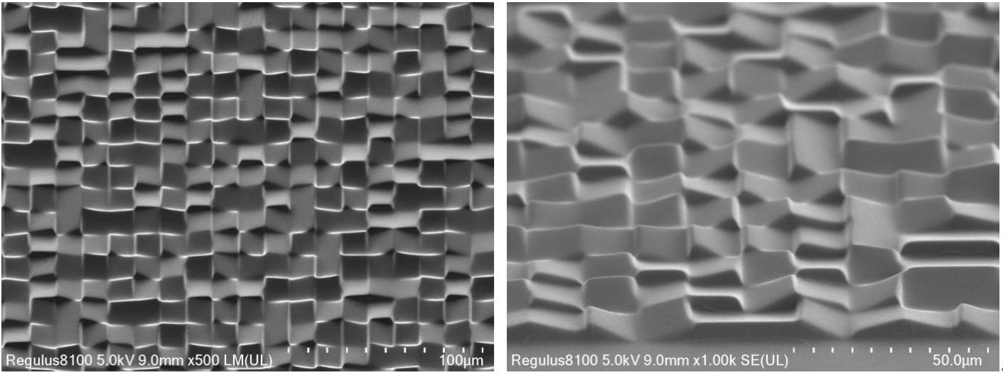 托托科技的无掩模紫外光刻机可直接“书写”出连续或阶梯状浮雕结构,轻松实现高填充比、周期排列的微透镜阵列快速加工,满足高性能集成化光学系统的需求。