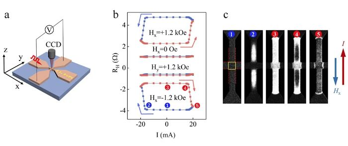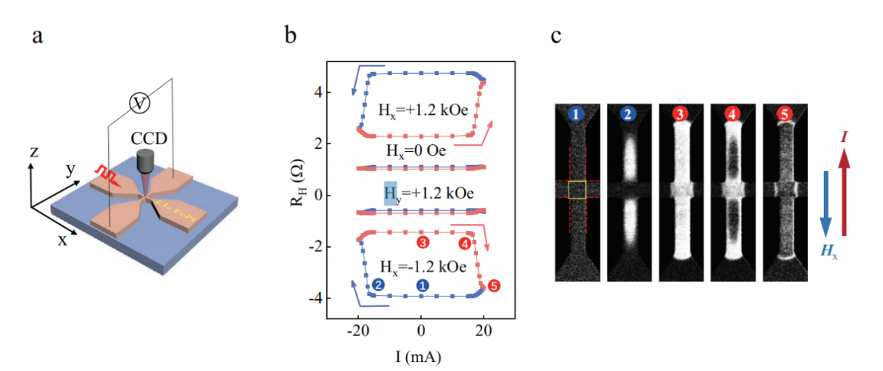 自旋力矩驱动磁化状态翻转的测量示意图(a)
