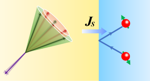 图1 非共线-双伞态磁结构中自旋输运示意图