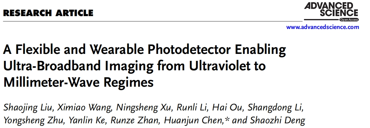 中山大学电子与信息工程学院在二维材料光电探测领域中取得最新进展,该研究成果以“A Flexible and Wearable Photodetector Enabling Ultra-Broadband Imaging from Ultraviolet to Millimeter-Wave Regimes”为题发表在Advanced Science上。