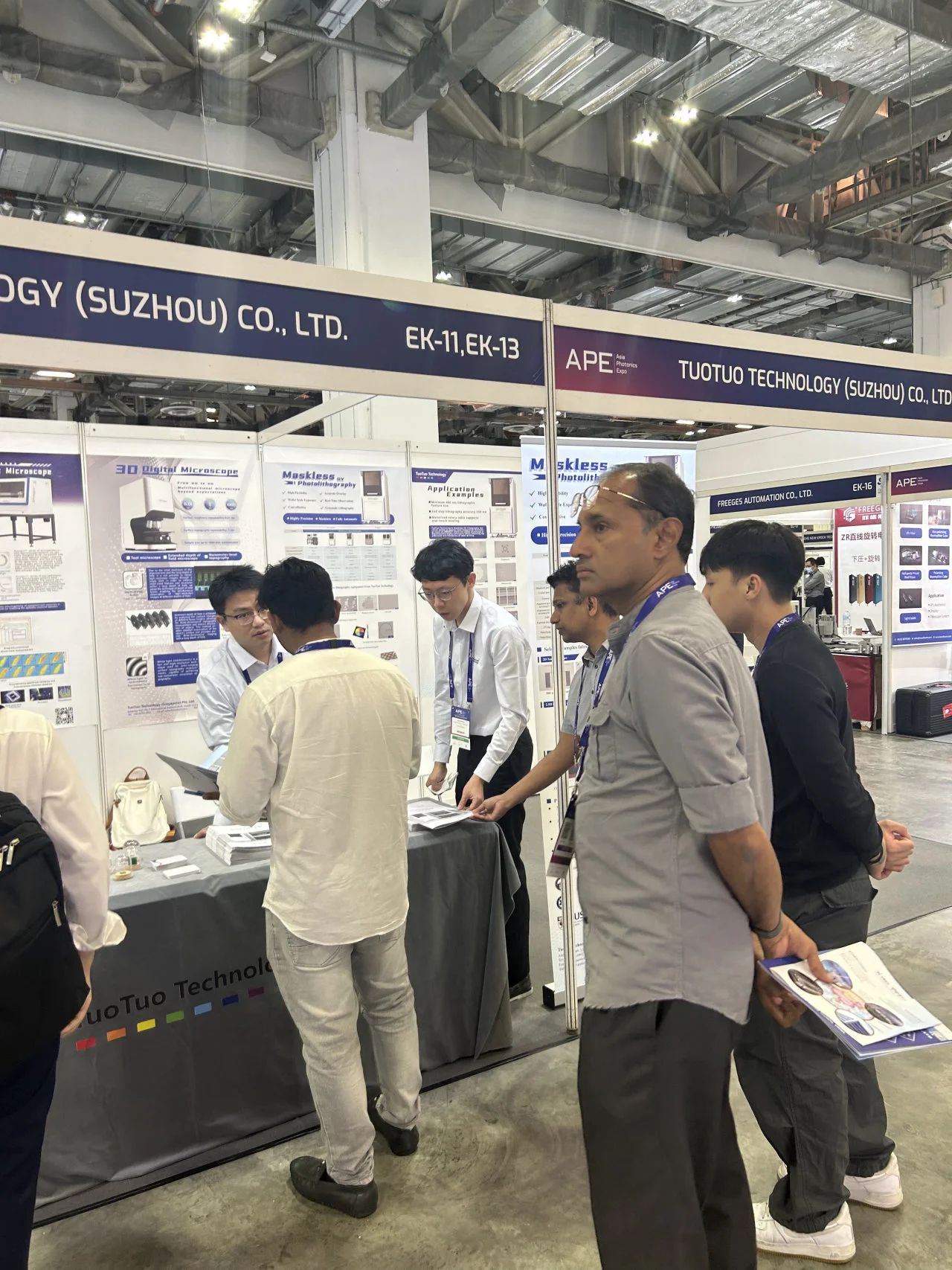 托托科技是一家专注于光学显微加工及检测的光学设备制造厂商。本次展会我们展示了五款核心产品:无掩膜版光刻设备;磁光克尔显微镜;光电流光谱设备;超高精度3D打印机;3D先进显微镜。