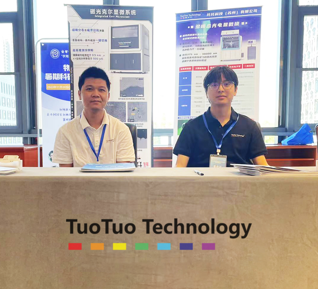 在研讨会上,托托科技的展台成为了众多与会学者和专家关注的焦点。第三代磁光克尔显微测试系统凭借其卓越的性能和创新的技术特点,为低维量子材料的研究提供了新的视角和工具。这一系统不仅能够提供高分辨率的磁性信息,还能够实现对材料表面和界面的精确分析,极大地推动了低维量子材料研究的深入发展。