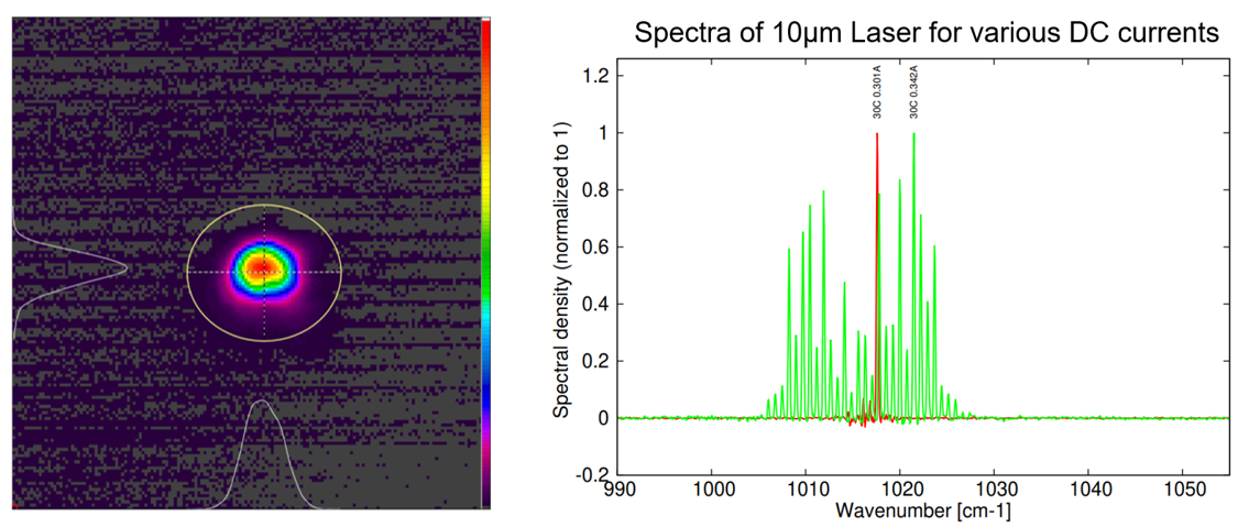 图1 托托科技10 μm中红外激光光斑以及光谱结果