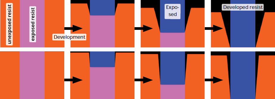 另外,在湿法化学工艺过程中,如湿法蚀刻或电镀,衬底附近的高残留溶剂浓度会导致光刻胶在衬底上的附着力降低导致工艺失败或者良率降低。