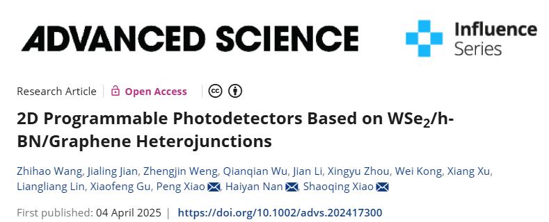 江南大学集成电路学院肖少庆课题组在光电子学领域/研究中取得最新进展,该研究成果以“2D Programmable Photodetectors Based on WSe2/h-BN/Graphene Heterojunctions”为题发表在《Advanced Science》上。