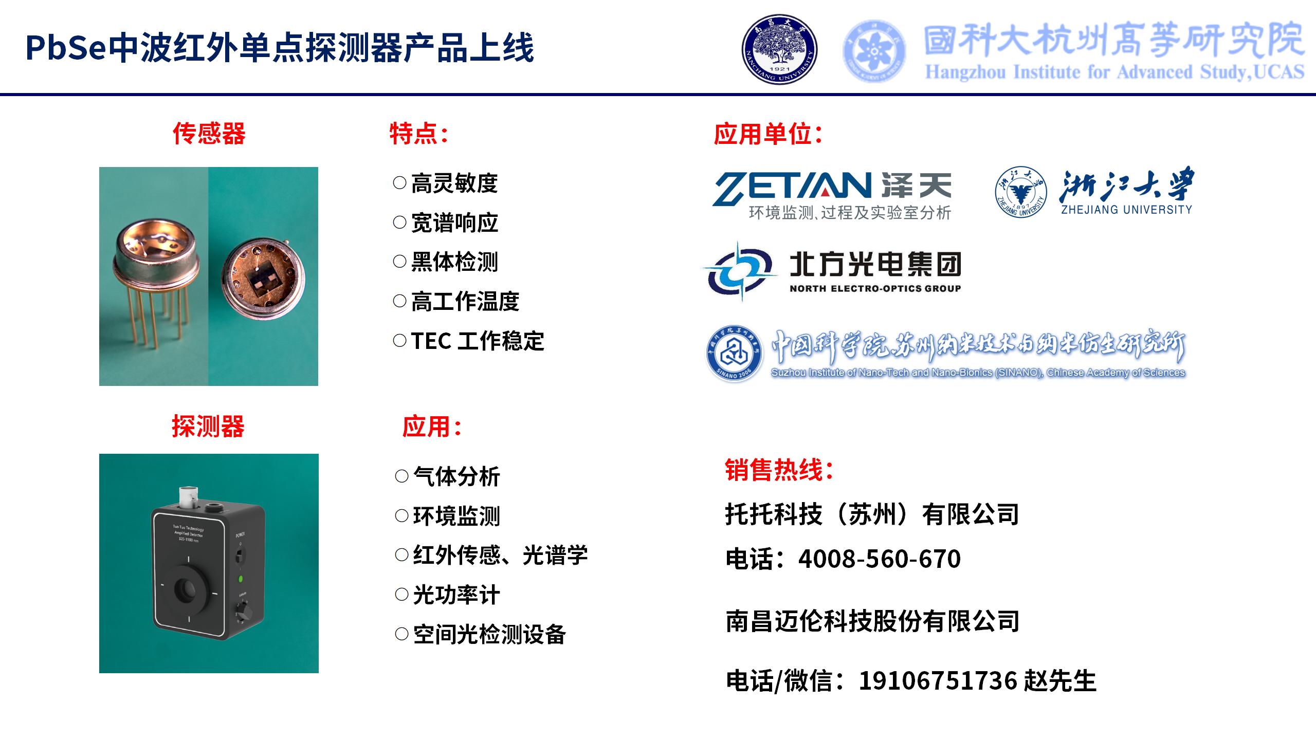 本工作实现的产品转化包括:TO系列PbSe非制冷红外探测器, TEC制冷PbSe红外探测器, PbSe线阵列探测器等。