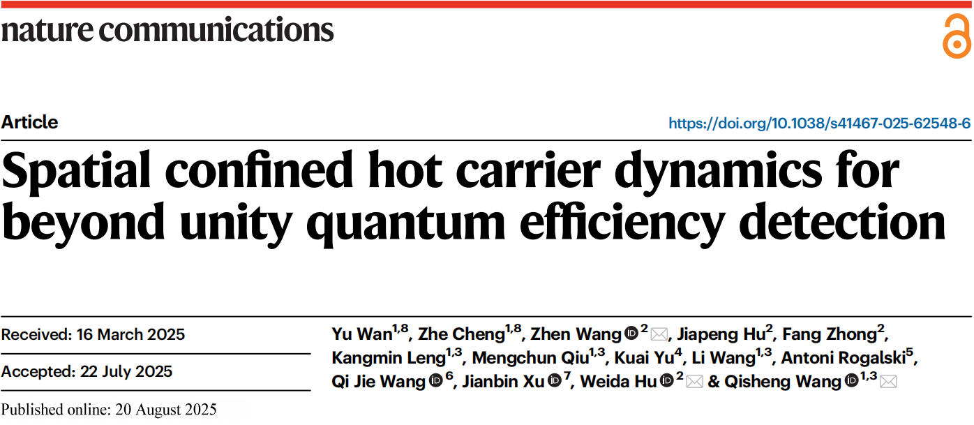 客户成果丨南昌大学、上海技物所《Nature Communications》:超单位量子效率探测的空间限阈热载流子动力学